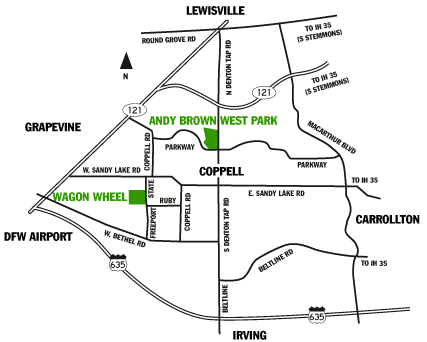 Below are the maps and directions to Andy Brown West Park and Wagon Wheel Park where the Association hosts all soccer games.
